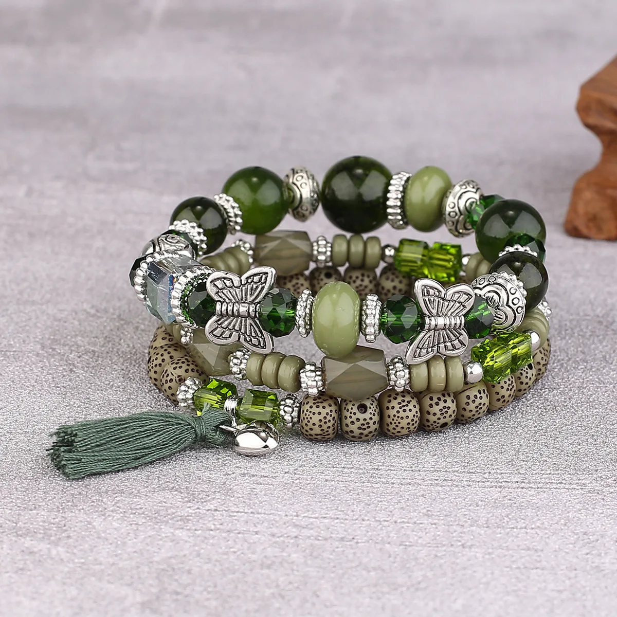 3pcs Boho Bohemian Pink Butterfly Pendant Charm Beads Bracelets Set For Women